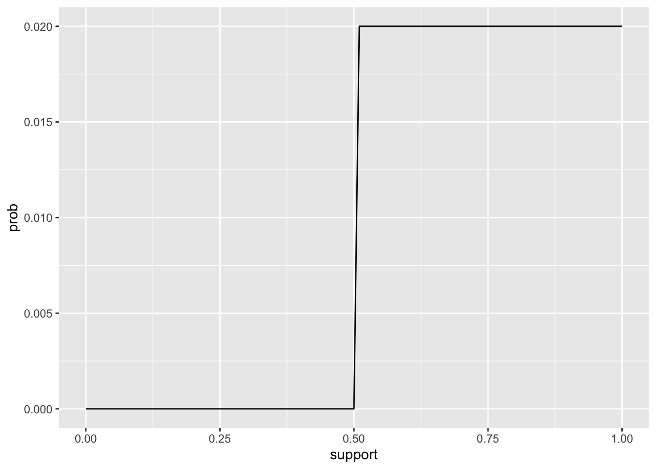 complete(support = seq(0, 1, by = 0.01) |> round(3), fill = list(prob = 0)) |>